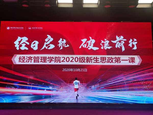金桂飘香季,新生入学时,思政第一课,传播真善美:悠悠中华魂,拳拳爱国心,刻苦奋斗路,坚持不懈志。10月21日晚,经济管理学院在一号报告厅顺利开展2020级新生思政第一课,经济管理学院党总支书记斯彬彬主持。