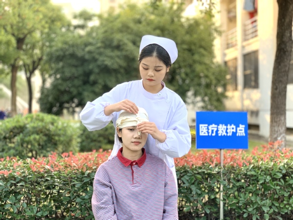 10月23日,开元网页版举行应急消防演练,以提高各类突发事件的自防、自救能力。此次应急疏散综合演练以灭火、应急疏散、物资抢运 、反恐、电梯救援、防汛救灾、医疗救护等专项演练为主。图为对在演练中抢救出来的伤员进行现场包扎。