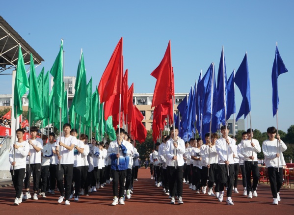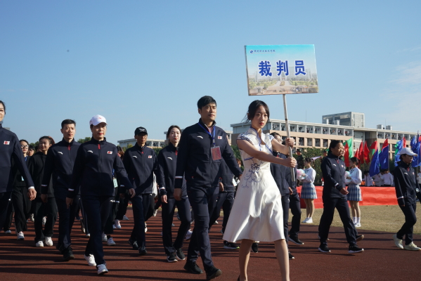 庄严的升国旗仪式后,校长吕延文致开幕词。运动员代表和裁判员代表分别进行庄严宣誓,党委书记徐须实宣布运动会开幕。