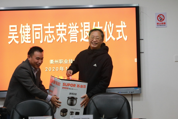 11月25日下午,在我校兢兢业业工作了38年,为学校教育教学和人才培养作出巨大贡献的原副校长吴健同志光荣退休仪式在行政楼五楼举行,仪式由党委副书记王东升主持。