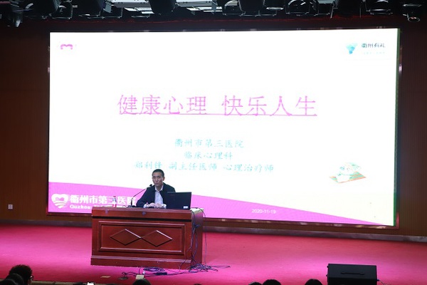 近日,衢州市第三医院临床心理科主任郑利锋应邀来到我校,在图书馆一号报告厅作了一场主题为“健康心理 快乐人生”的心理健康教育讲座,300余名大一新生代表聆听了此次讲座。