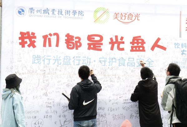 光盘签名,承诺有我。11月23日中午,食堂门口举办了“我们都是光盘人”签名活动,全校师生积极响应,踊跃在宣传墙写下自己对光盘的承诺,并签下名字,郑重承诺“从自身做起,切实增强责任感和紧迫感,以实际行动表达对厉行勤俭节约、反对铺张浪费的响应与支持,做节粮爱粮的实践者、监督者。”