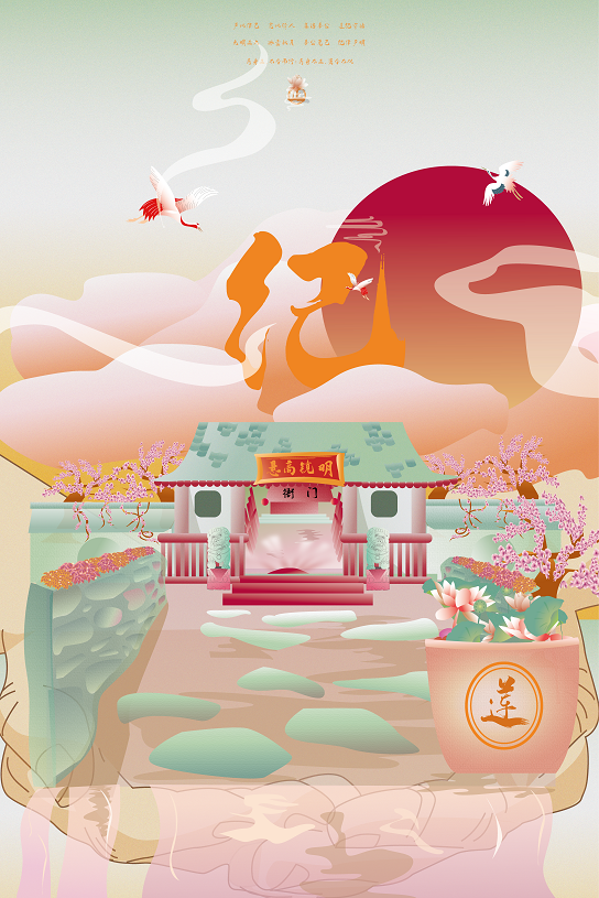作品介绍:围绕校园清廉文化的主题,其中标志性元素莲花,代表高洁正直;孔子像与衢州与“南孔圣地·衢州有礼”的城市品牌相呼应;古代衙门,代表着廉洁奉公、遵纪守法。