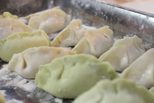活动现场,胡萝卜汁调制的橙色面团,菠菜汁调制的绿色面团,韭菜鸡蛋馅、冬瓜肉馅井然有序摆放在桌子上。师生们摩拳擦掌、跃跃欲试,揉面、擀皮、放馅、包紧,动作一气呵成,包出的饺子大小均匀,皮薄馅大,饱满诱人。当一盘盘热气腾腾的饺子上桌时,师生们笑逐颜开,一边吃饺子,一边话家常,现场其乐融融,欢声笑语不断。