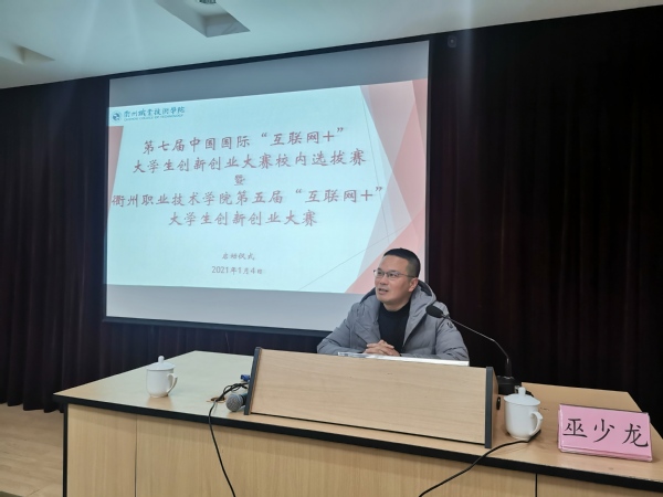 巫少龙指出,本次启动仪式的主要任务是深入贯彻全国、全省教育大会和校第二届党代会精神,全面落实习近平总书记给中国“互联网+”大学生创新创业大赛“青年红色筑梦之旅”大学生的重要回信精神,按照全国大赛总体安排,动员和部署我校参赛工作,持续激发学生创新创业热情,全面深化创新创业教育改革,提升我校学生的创业意识、创新精神和创业能力。他强调,师生们要提高站位,充分认识到创新创业大赛的重要性;要把竞赛建设成培养我校学生创新创业能力的重要平台;要总结经验,营造创业氛围,争取更好的成绩。他预祝我校第五届“互联网+”大学生创新创业大赛取得圆满成功,预祝各二级学院在各级大赛中勇创佳绩。