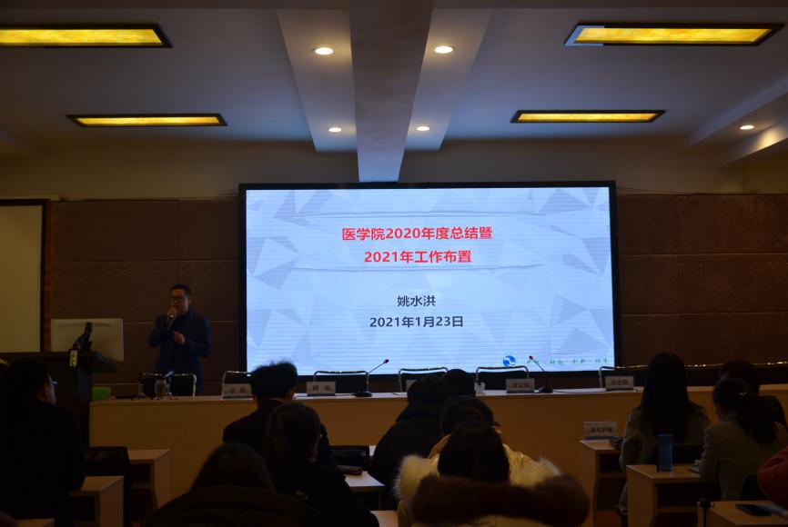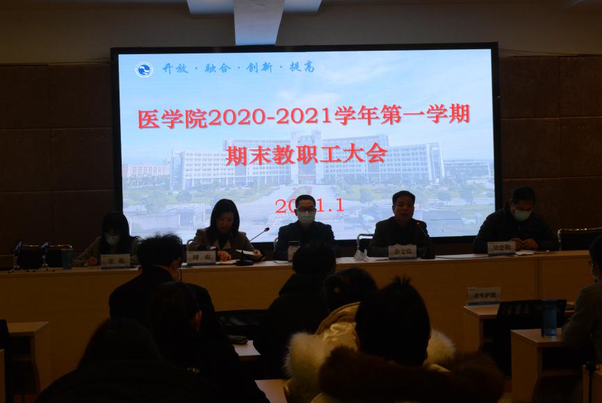 2021年1月23日上午,医学院召开学院2020年度总结暨2021年工作部署大会,医学院全体教职工参加会议。会议由医学院党总支书记余文富主持。