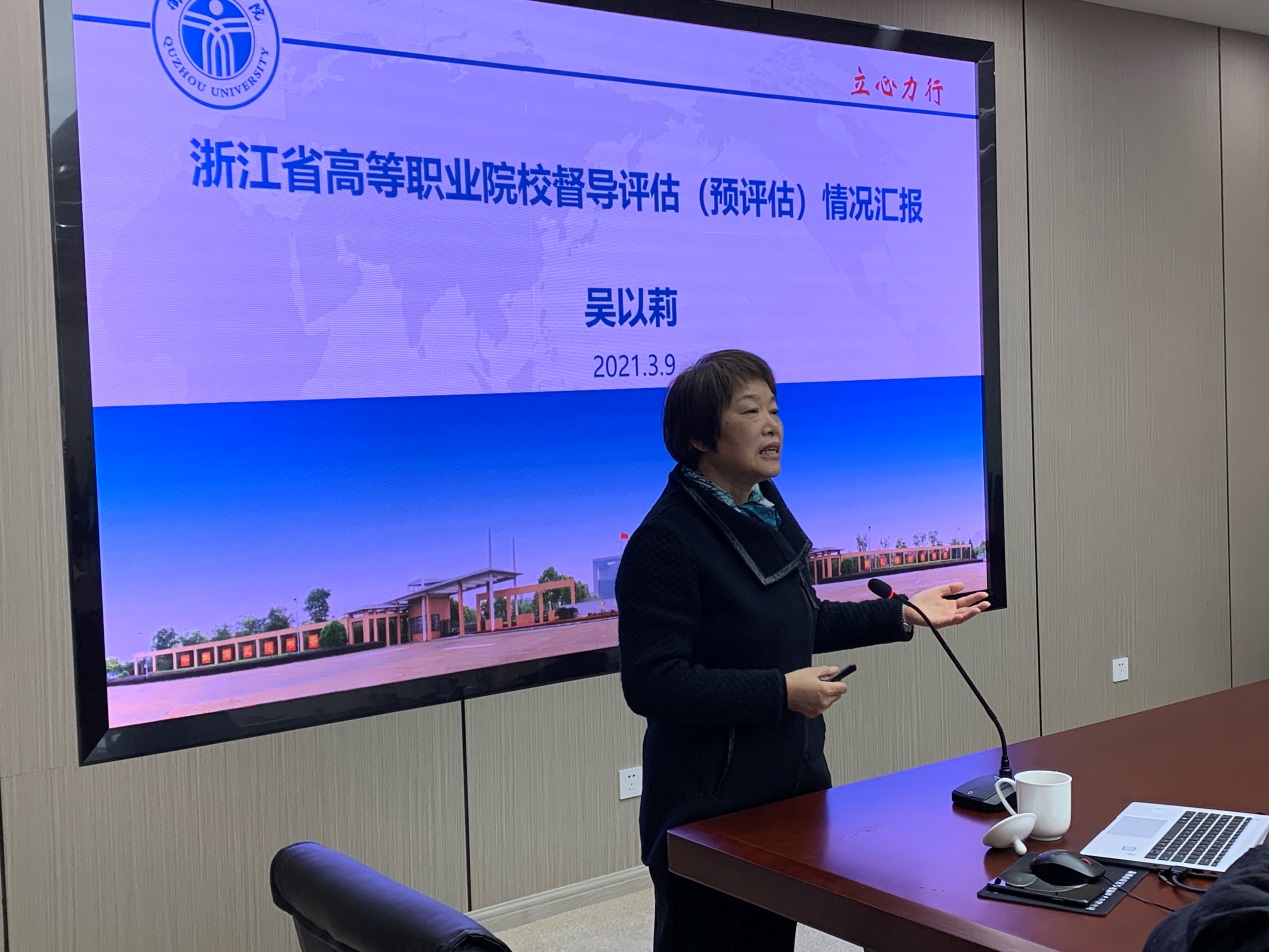 衢州学院原教务处处长吴以莉教授介绍了省高职院校督导评估工作的时代背景和重要意义,细致解读了省高职院校督导评估工作的指标体系,明确了督导评估专家进校前学校的准备工作和专家进校后的考查重点。她建议,学校应以评促建、以评促改、以评促管,开阔办学眼界,将双高建设成果转化为教学资源,树立人才培养第一的理念。