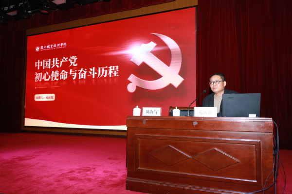为树立校园讲坛文化品牌,深化校园文化育人功能,在即将迎来中国共产党建党100周年之际,掀起广大青年学生学党史的热潮,3月24日下午,在图书馆一号报告厅举办了“尚德讲吧”第一讲。讲座由党委委员、宣传部部长孔庆红主讲,学工部(学生处)部长(处长)陈海清主持,全校300余名学生代表参加。