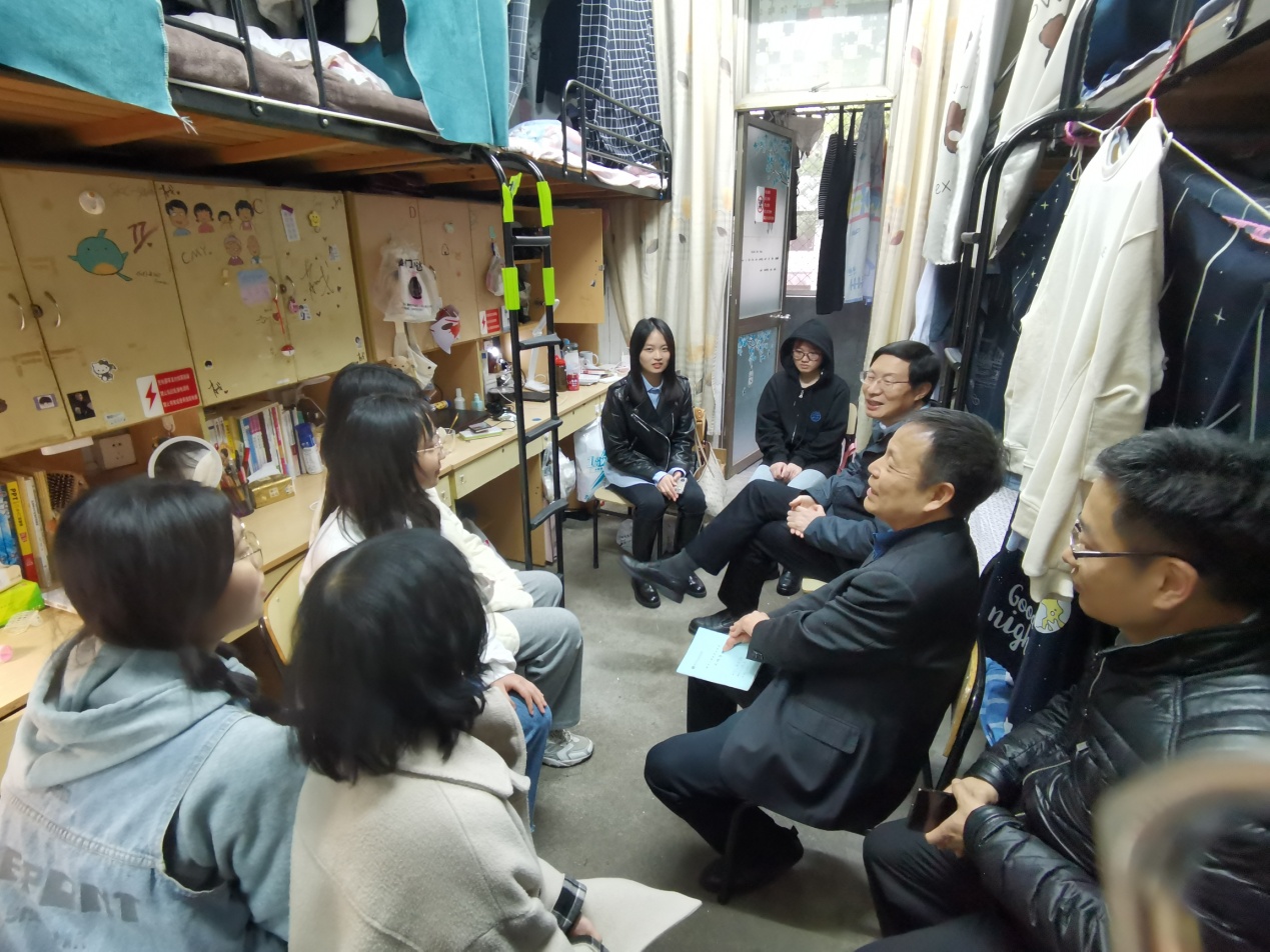 为更好地深化践行我校“三二二一”联系制度,关心了解学生新学期开学以来的思想动态,4月8日,校党委书记徐须实来到了尚雅楼3132寝室,看望联系寝室的同学。校党委办公室主任叶彦明、医学院党总支书记余文富等陪同走访。