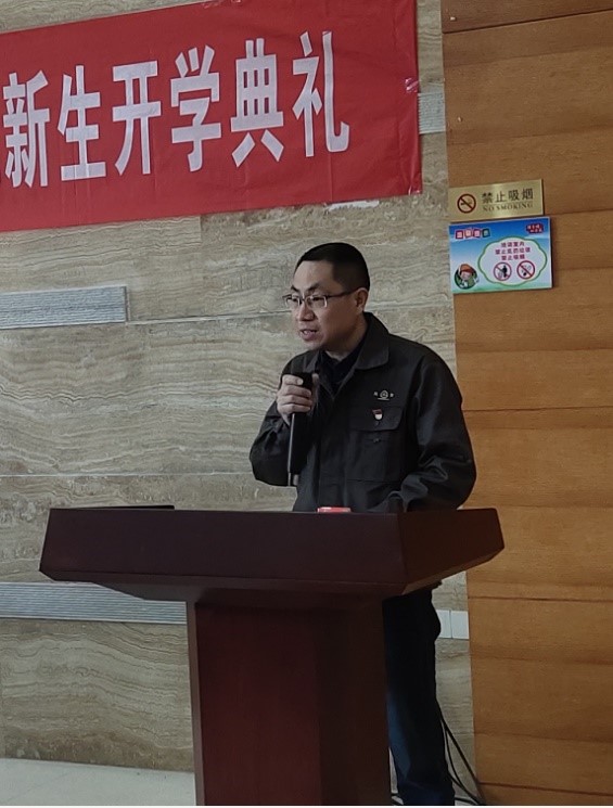 最后,毛建辉老师代表全体任课教师发言,表示老师会竭尽所能、不遗余力地帮助大家,希望同学们在接下来两年半的时间里一起携手并进。余水龙代表新生发言,表达了对大学学习的憧憬和向往,承诺会利用这个宝贵的资源,认真学习,顺利完成所有的学习任务。