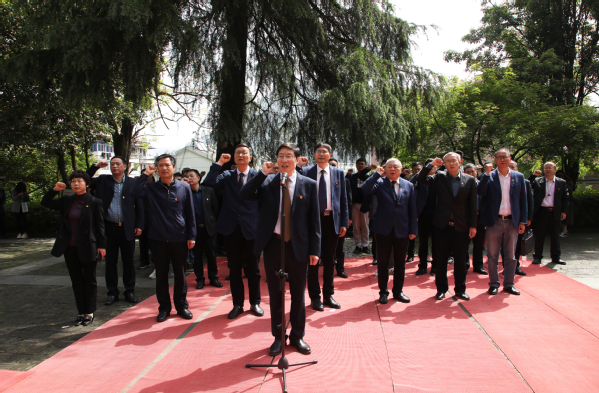 “我志愿加入中国共产党,拥护党的纲领,遵守党的章程,履行党员义务,执行党的决定,严守党的纪律,保守党的秘密,对党忠诚,积极工作,为共产主义奋斗终身,随时准备为党和人民牺牲一切,永不叛党。”在学校党委书记徐须实的带领下,全体党员站在鲜红的党旗下重温了入党誓词。