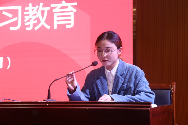 校学生会主席团成员贝清婧以《百年征程 青春筑梦》为题,为参会人员作党史宣讲。