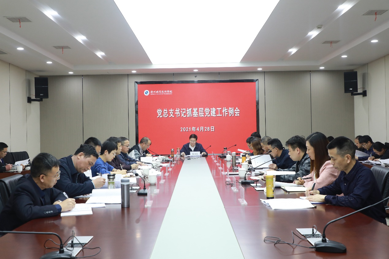 4月28日下午,我校召开党总支书记抓基层党建工作例会。校党委书记徐须实、党委副书记王东升、党委委员、组织部部长徐浪静出席会议,全校各党总支书记、党支部书记参加了会议。会议由王东升主持。