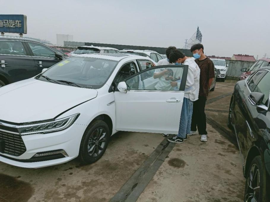 指导教师毕少平老师带领参赛选手借用4S店新能源汽车进行训练