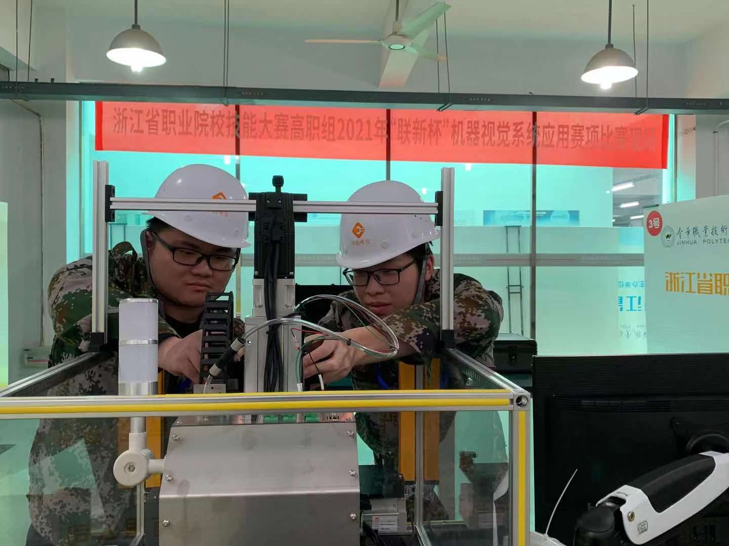 据悉,“机器视觉系统应用”赛项共吸引了全省的18支代表队参加,包括金华职业技术学院、宁波职业技术学院等传统强队。比赛主要考查相机镜头选型、硬件连接、单视野相机标定、手眼标定、视觉定位、尺寸测量和外观检测等专业相关能力和职业素养。