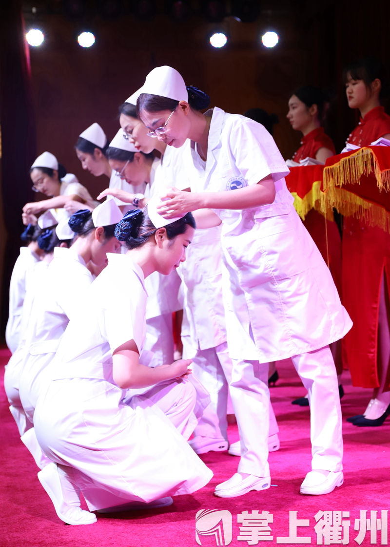 5月12日是第110个国际护士节,今年的主题是“传承红色基因 创新发展护理”。加冕仪式上,衢州援鄂白衣战士、开化县中医医院90后护士余琳欢也应邀回到母校,向护理专业学生讲述自己逆行武汉的抗疫经历,宣讲生命至上,举国同心,舍生忘死,尊重科学,命运与共的伟大抗疫精神。