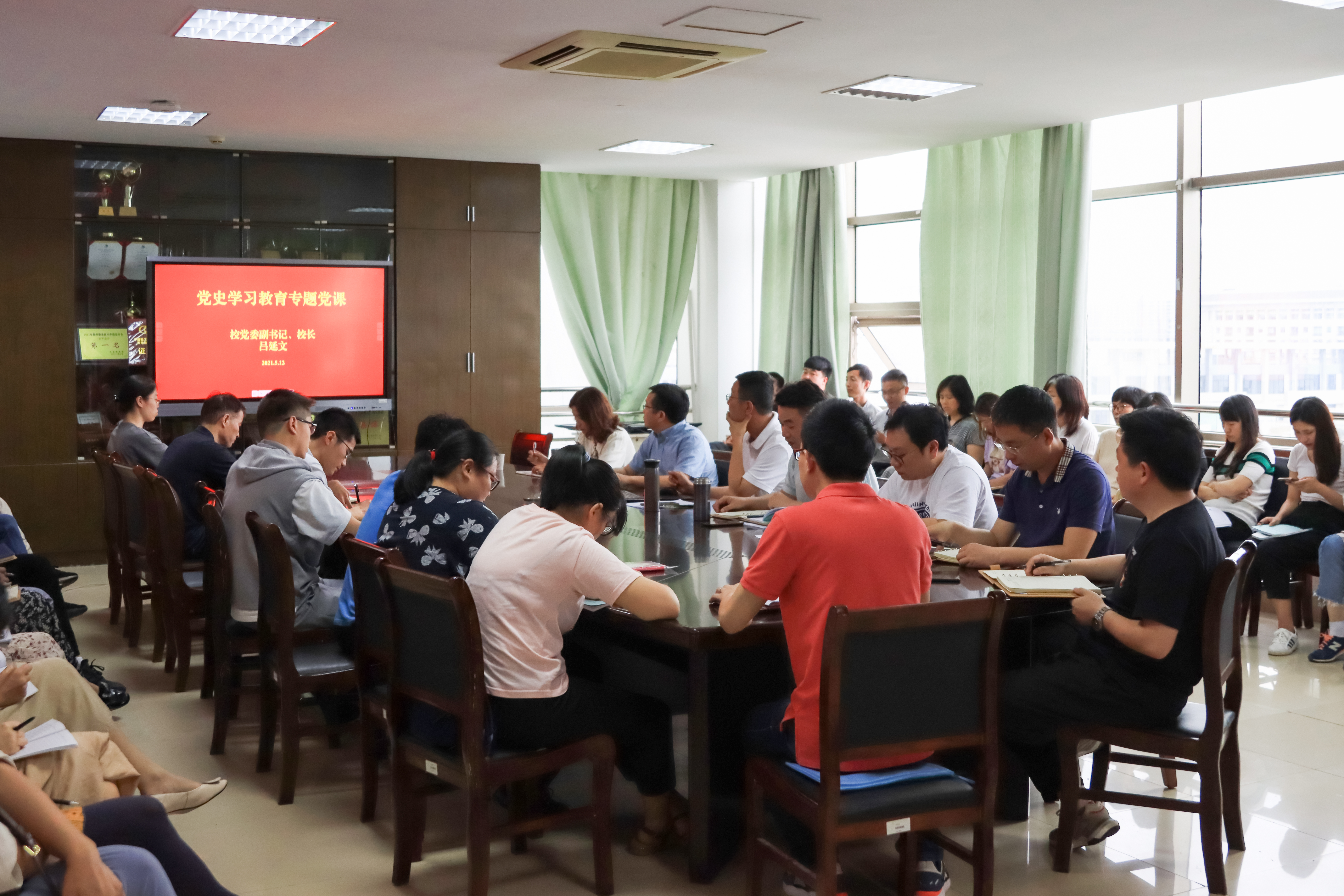 5月12日下午,校长、党委副书记吕延文来到信息工程学院,为全体教师和学生代表上党史学习教育专题党课。