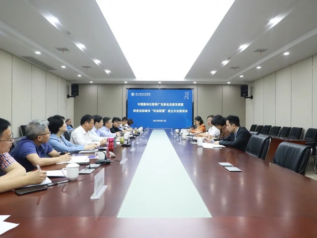 调研结束后,中国衢州互联网广告新业态新发展暨四省边际城市“好品联盟”成立大会座谈会在我校举行。座谈会由市政府副秘书长刘卸荣主持。