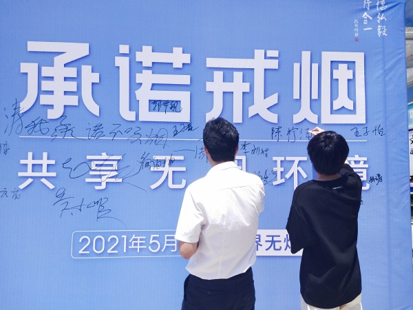 2021年5月31日是第34个世界无烟日,今年的主题为“承诺戒烟,共享无烟环境”。为贯彻落实《健康中国行动(2019-2030年)》控烟行动有关要求,有效提升我校师生烟草危害健康知识水平,5月31日中午,后勤保卫处在食堂门口举行戒烟承诺签名活动,全校师生踊跃参加。