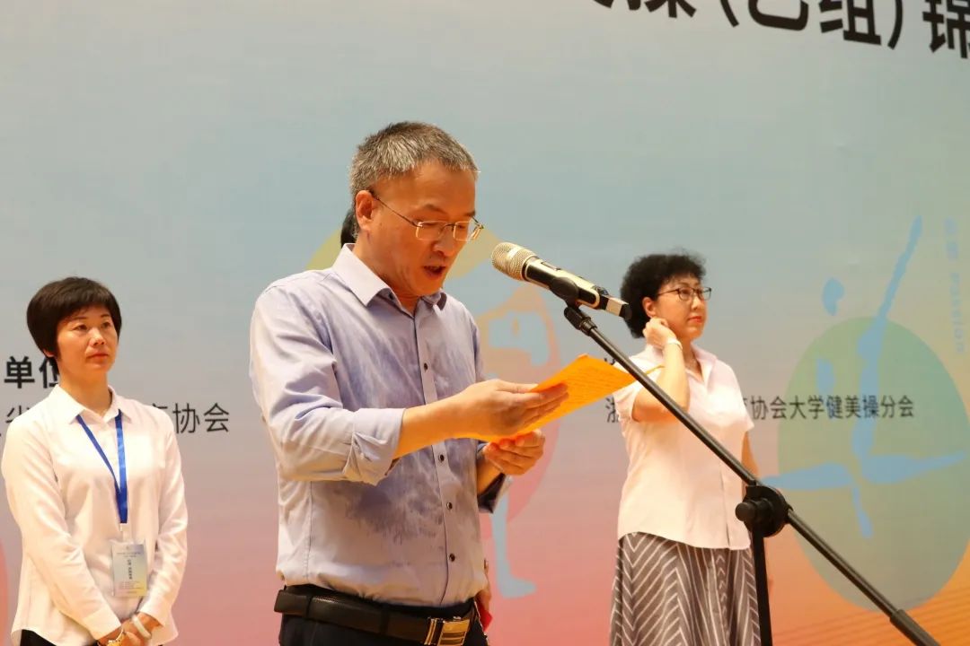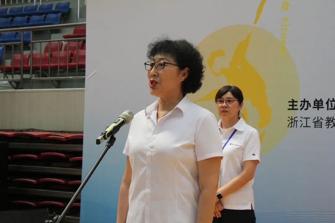 2021年浙江省大学生健美操(乙组)锦标赛于6月5日在开元网页版开幕。来自全省各高职高专院校15余支代表队,200余名运动员共同参加了这场精彩赛事。浙江省学校体育协会常务副秘书长姜丽女士,开元网页版党委委员、副校长何百通,浙江省学校体育协会健美操分会主席张杰等出席开幕式。开幕式由开元网页版文化旅游学院院长郭大勇主持。