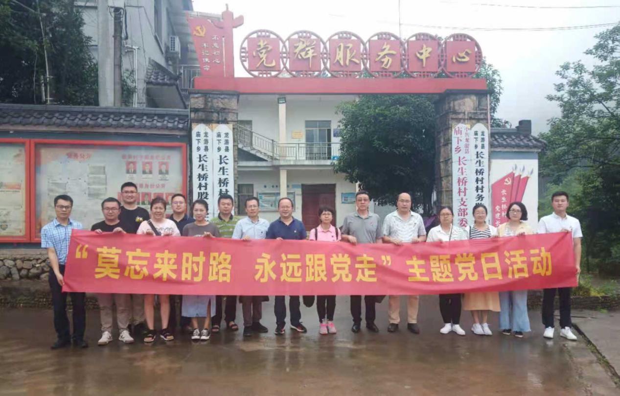 为庆祝建党100周年,2021年6月19日,继续教育学院党支部和组织人事党支部组织全体党员到龙游县庙下乡长生桥村,开展了“莫忘来时路,永远跟党走”的主题党日活动。