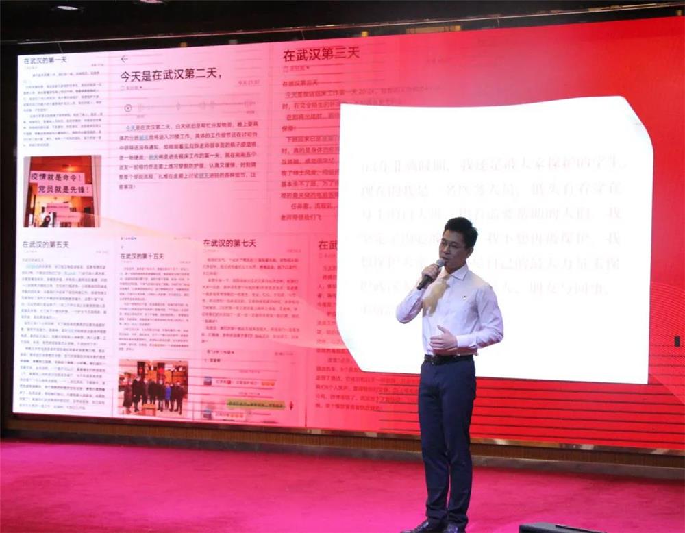 信息工程学院学生刘亚歌带来宣讲《九仟采风话初心 坚定信仰永向党》,讲述了九仟采风团的“90后”、“00后”青年大学生们一步一脚印,一目一坚定,努力追寻老党员们的身影,擦亮蒙尘的红色记忆,让共产党人的初心,在九仟采风中,永葆青春,永远滚烫。