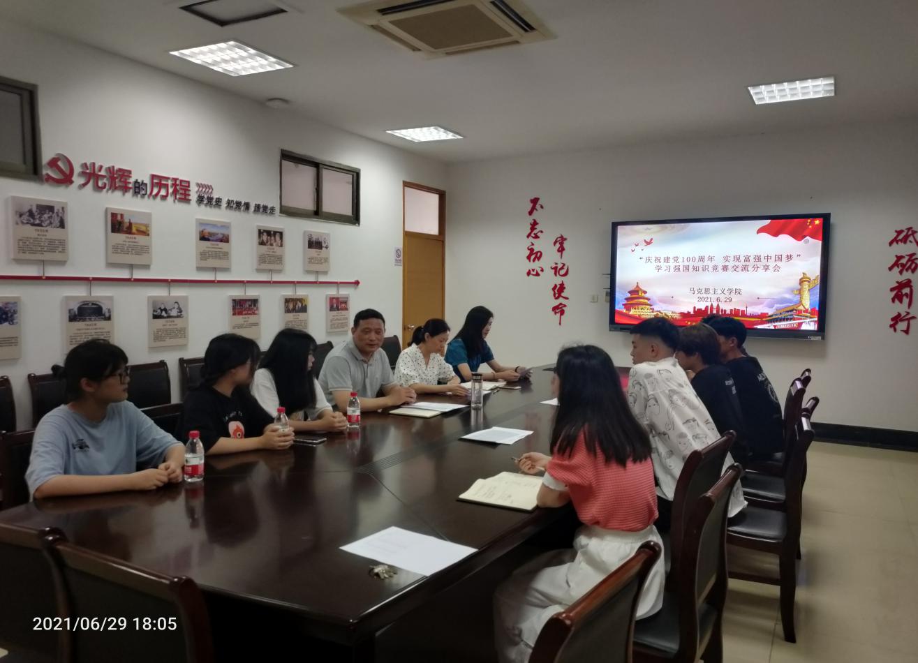为进一步了解学生使用该平台的学习情况,坚定他们坚持学习的信心和决心。6月29日晚,马克思主义学院组织2020级学生代表在行政楼8楼会议室召开“学习强国”学习积分竞赛交流会,马克思主义学院院长邵方益主持会议,马克思主义学院教师代表参加会议。