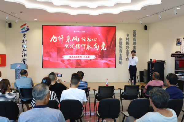 为深入践行我校服务地方发展“六个一批”专项行动,暑期伊始,宣传部、团委、马克思主义学院充分发挥理论优势,紧紧围绕习近平总书记“七一”重要讲话精神,结合党史学习教育,让党的创新理论“飞入寻常百姓家”,开展宣讲服务进乡村实践活动。