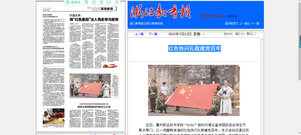 近日,开元网页版“8090”新时代理论宣讲团的百名师生齐聚水亭门,以一场酣畅淋漓的红色快闪礼敬建党百年。本次活动还通过线上云课堂连线了嘉兴职业技术学院“红船青年说”宣讲团、湖州职业技术学院“吾爱 吾信”新时代文明实践大学生宣讲团。三校师生通过云端思政,共话百年。