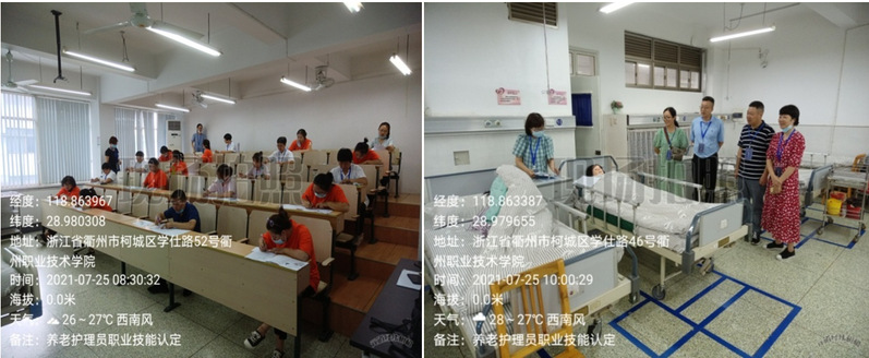 7月25日,我校首次组织开展了养老护理员(五级)职业技能等级认定工作。衢州市天颐老人之家、逸和源∙恰东篱堂等养老机构的20余名员工参考了认定考试。衢州市人社局技能人才评价管理服务中心领导和工作人员全程现场督导,考试过程全程录像,考试成绩将成为考试员工获得职业技能等级认定的重要依据。这是我校开展社会化职业技能等级认定工作的首场考试。