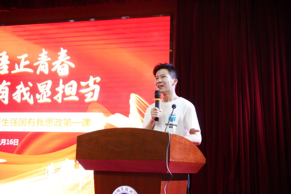 学思践悟正青春,强国有我显担当。眼下正值开学季,思政第一课作为大学生始业教育的一堂必修课,具有重要的教育意义。经济管理学院于2021年9月17日在1号报告厅为2021级新生设计了“强国有我思政第一课”,新生班主任、辅导员出席,经济管理学院党总支书记斯彬彬主持并发言。