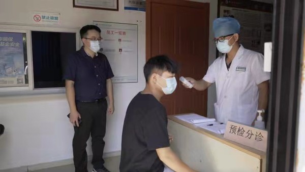 (班主任陪同发热学生前往医务室就诊;医务室医生开展体温复检,询问流行病学史,确认发热后送医院核酸检测)