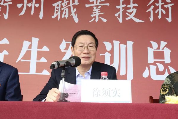 徐须实在讲话中指出,无奋斗,不青春!同学们通过军训,学习了军事知识和技能,培养了集体意识和团队荣誉感,领略了现代军人勇敢顽强、艰苦奋斗、纪律严明、一往无前的优良作风。希望同学们在今后的学习生活中,要尚德修身,做一个有道德修养的人。能严以律己、磨砺意志、尚德弘毅、知行合一,成为一个爱国、敬业、诚信、友善的人。要勤学上进,做一个有技术专长的人。珍惜光阴、勤学苦练,练好专业技能和过硬本领,通过三年努力实现羽化蝶变,真正成为让人刮目相看、争相抢要的高素质技术技能人才。要坚持锻炼,做一个有健康体魄的人。在学习之余,能放下手机、走出寝室,到体育馆去、到操场上来,动起来、练起来!