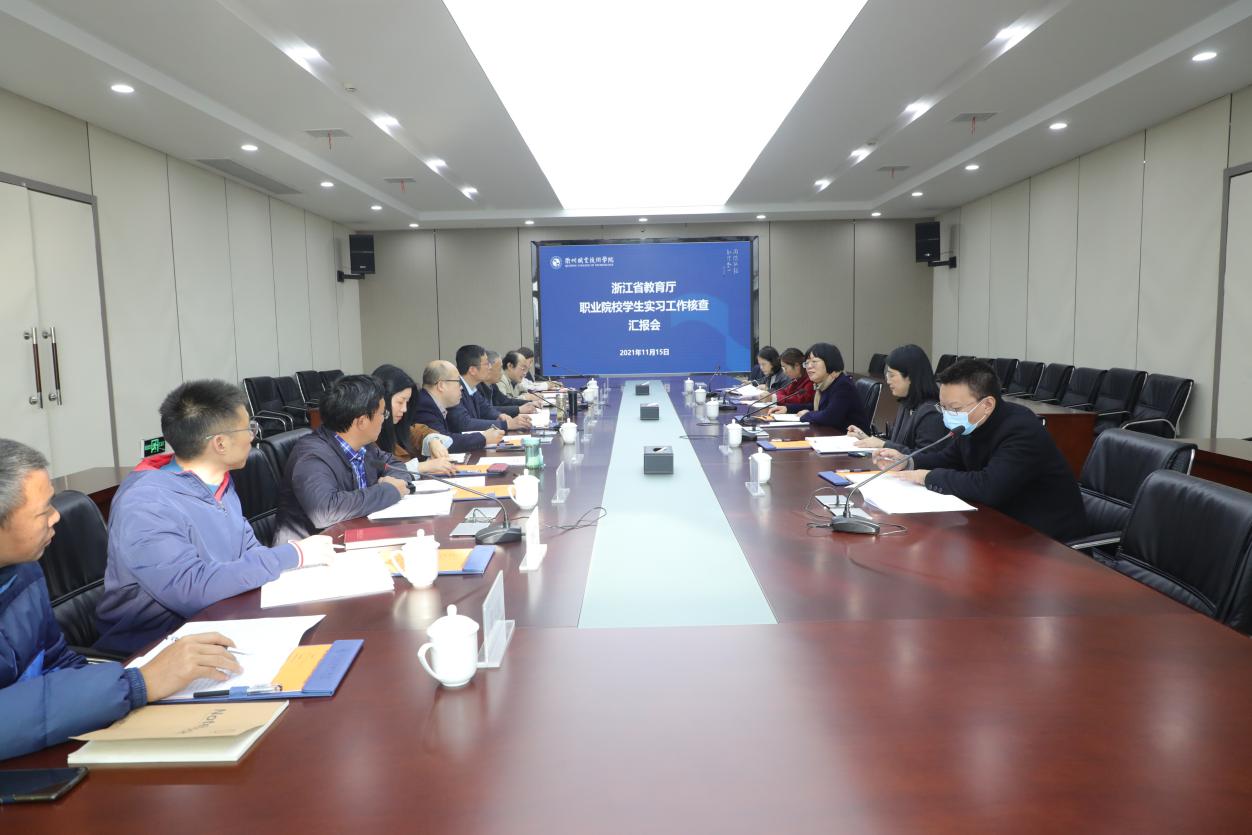 为进一步做好职业院校实习实训工作,2021年11月15日上午,浙江省教育厅专家组赴我校开展学生实习管理工作核查。核查报告会在四楼会议室召开,专家组全体成员、吕延文校长、何百通副校长、教务处和学工部负责人以及二级学院分管实习工作领导参加会议,会议由专家组组长金华职业技术学院成军副校长主持。