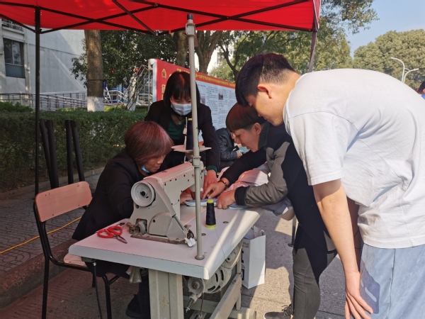 “爱心一线牵”缝补活动为师生提供免费裁剪、熨烫、织补衣服及修鞋服务。