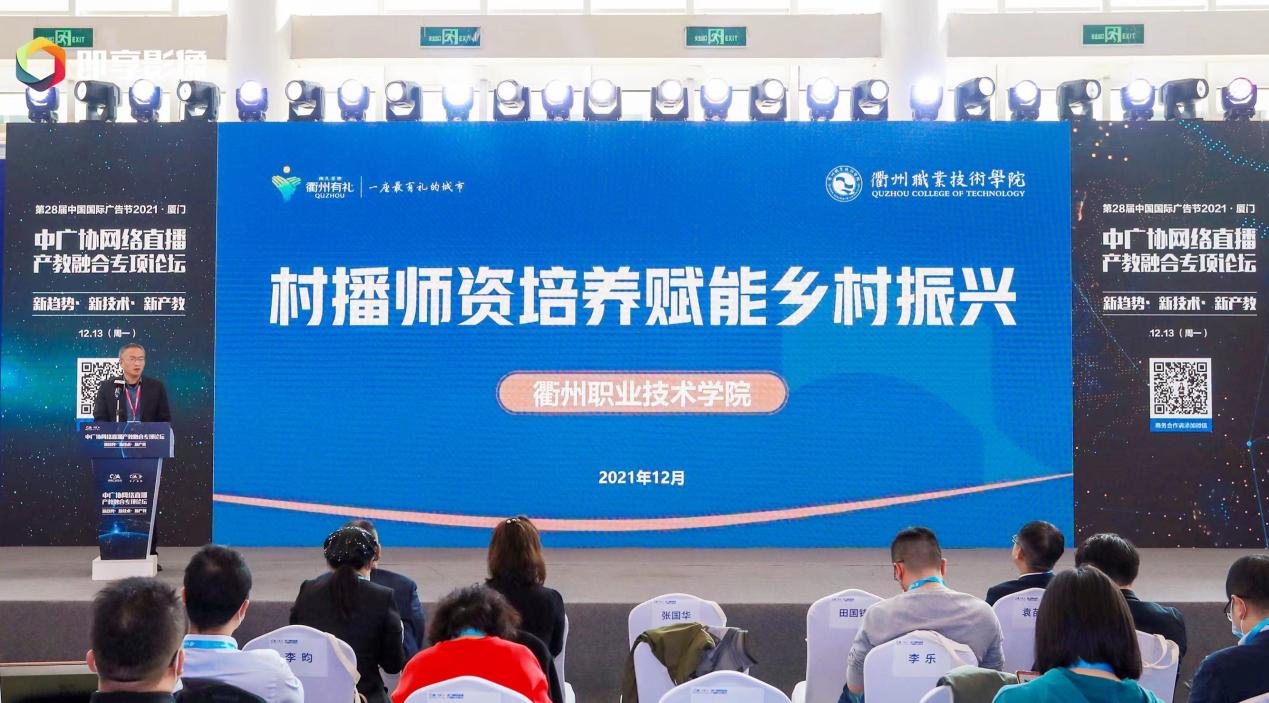 何百通在本次广告节网络直播产教融合专项论坛上作了题为《村播师资培养赋能乡村振兴》的主旨报告,介绍了我校发挥地方高校优势,通过村播师资培养赋能乡村振兴方面的宝贵经验。本次广告节网络直播产教融合专项论坛以“新趋势·新技术·新产教”为主题,展望了网络直播行业新趋势,以新技术赋能新产教,助推职业教育和区域经济高质量发展。