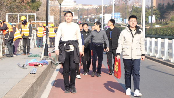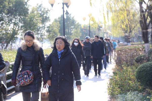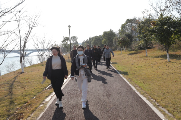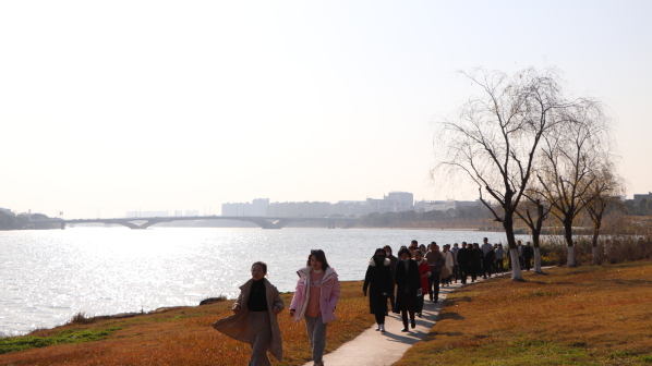 沐浴着冬日的暖阳,教职工们精神抖擞,由学校南大门出发,沿信安湖湖滨向北行进,沿途经过学校东大门、衢州学院操场东边围墙、浮桥、信安湖湖滨绿道、姚家堤区域导览牌、浮石古渡(打卡点1)、浮石二桥、信安阁(打卡点2)、书院大桥、学校东门的路线,一路欣赏冬日美景,一路畅谈新的一年工作愿景,充满着欢乐与活力。