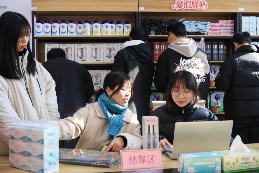 辞旧迎新,万物更新。2021年12月31日,在校工会和衢州市慈善总会联动下,学校“爱心超市”发起“心·新相映”志愿服务积分兑换活动。同学们通过在校期间的志愿服务积分在超市内兑换围巾、保温杯等温暖的跨年礼物,成功兑换后还能够获得一颗装着知识、力量和希望的“新年爱心”,以此感恩青年学子一年来的“爱心”奉献,祝福同学们“用心”开启新年新征程!