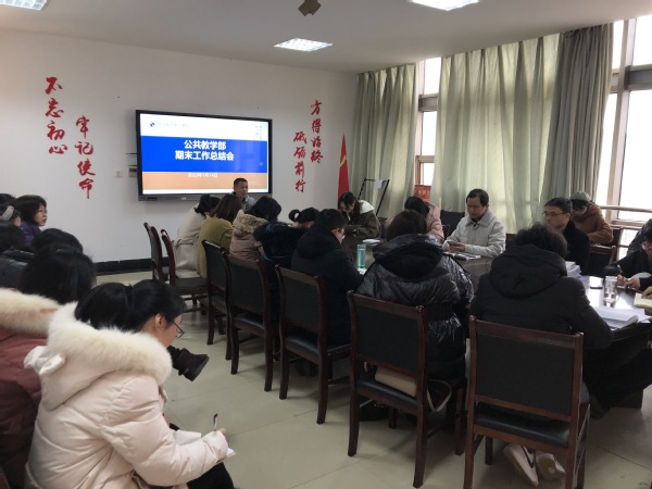 1月14日上午,公共教学部召开了期末工作总结会议,全体教职工参加。会议由公共教学部主任徐云青主持。