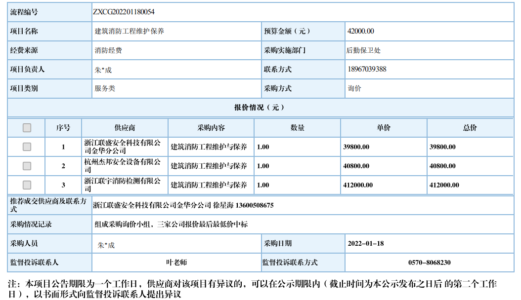 开元网页版建筑消防工程维护保养项目自行采购信息公示
