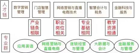 以市场营销、连锁经营与管理和应用英语为核心,以大数据与会计、金融服务与管理为两翼,通过现代商贸服务的商流、资金流和信息流“三流汇聚”的高端业态将专业群面向的产业业态逻辑汇聚起来,积极打造现代商贸服务专业群。