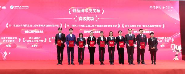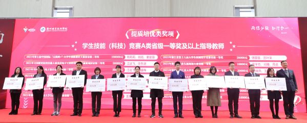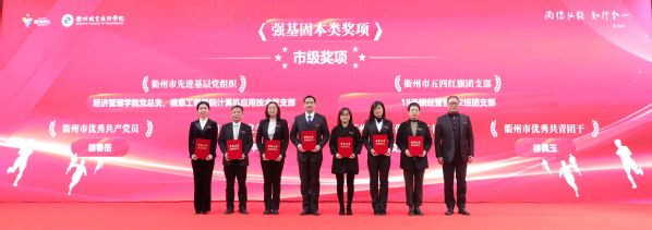 会上,青年教师代表以团体演讲的方式重温了《衢职这一年》,对2021年获得“强基固本”“增值赋能”“提质培优”三大类国家级、省级、市级奖项和荣誉的优秀团体和个人进行了隆重表彰。