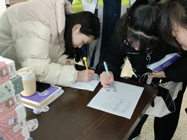 同学们在卡纸上写下自己新一年的flag督促自己,有立志考取英语六级证书的,有立志拿奖学金的,有立志读20本书的,有立志减肥10斤的……给自己的2022充值希望与动力。同学们还可以抽取幸运盲盒,里面有笔、橡皮、胶水等文具,看看新年第一份运气如何。大学生自我发展中心的干事们将同学们的心愿黏贴在心愿墙上,希望同学们可以实习自己立的flag。