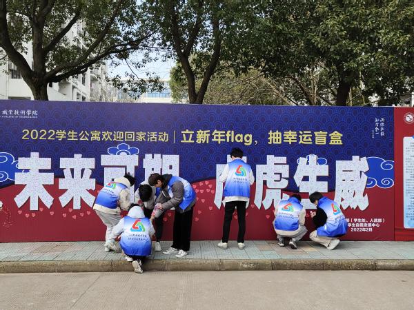 新年新气象,百尺竿头更进一步。2月22日,为欢迎广大学子回归学校开启新一学期的校园生活。大学生自我发展中心在各幢公寓内开展了“立新年flag,抽幸运盲盒”活动。