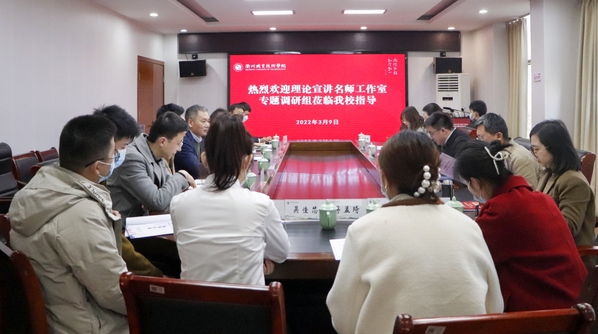 3月9日上午,省委宣传部理论宣讲名师工作室专题调研组一行五人专题调研我校“青春信仰青年讲”8090新时代理论宣讲名师工作室,因疫情防控需要,调研座谈会在柯城区万田乡政府会议室举行。市社科联主席、8090专班专职副主任刘章华,校党委委员、宣传部部长孔庆红参加座谈会。