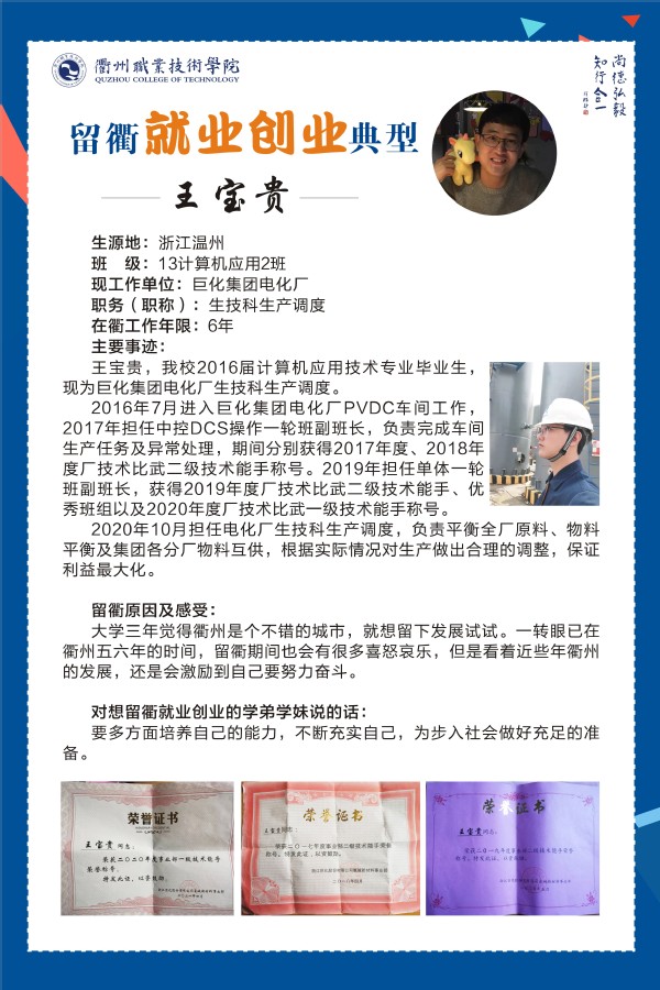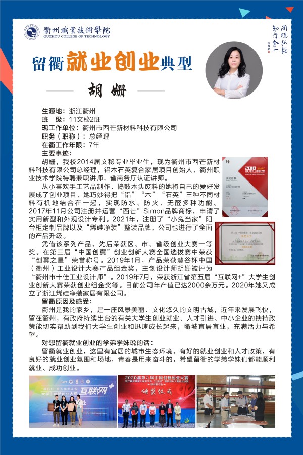 本期,让我们一起走进衢职学子:胡姗、王宝贵的留衢就业创业故事。