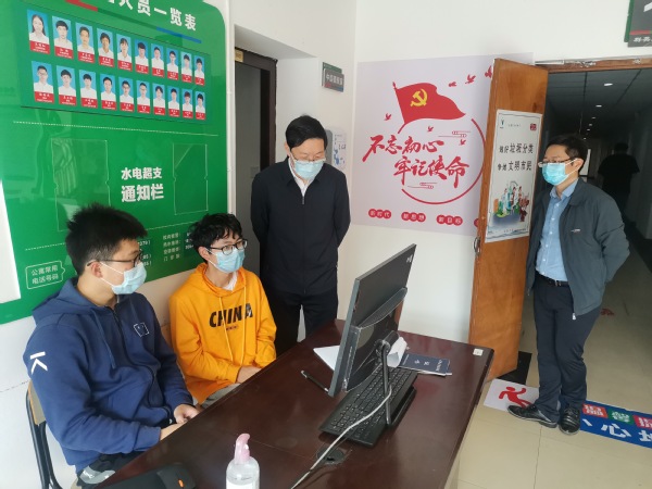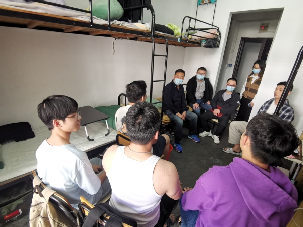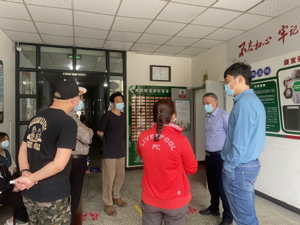 校领导方焕云、何百通、余建军、徐浪静、孔庆红、周帅分别深入联系战区和联系寝室,了解校园实时防疫动态。