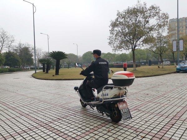 安保人员正在进行校园安全巡逻。