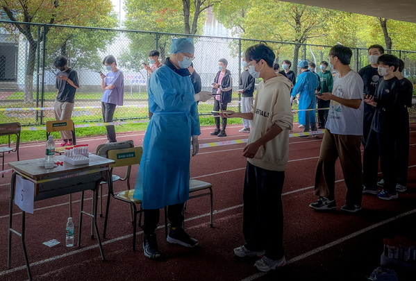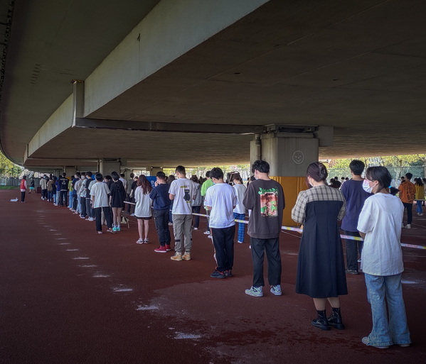 下午核酸检测接近尾声,稍微放松一下 舒成通 摄