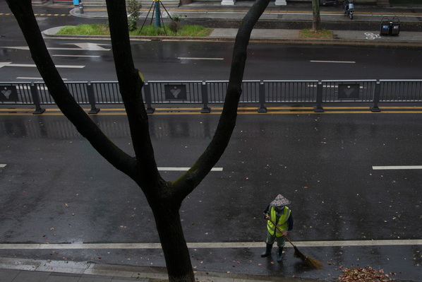 环卫工人还在坚守岗位 舒成通 摄
